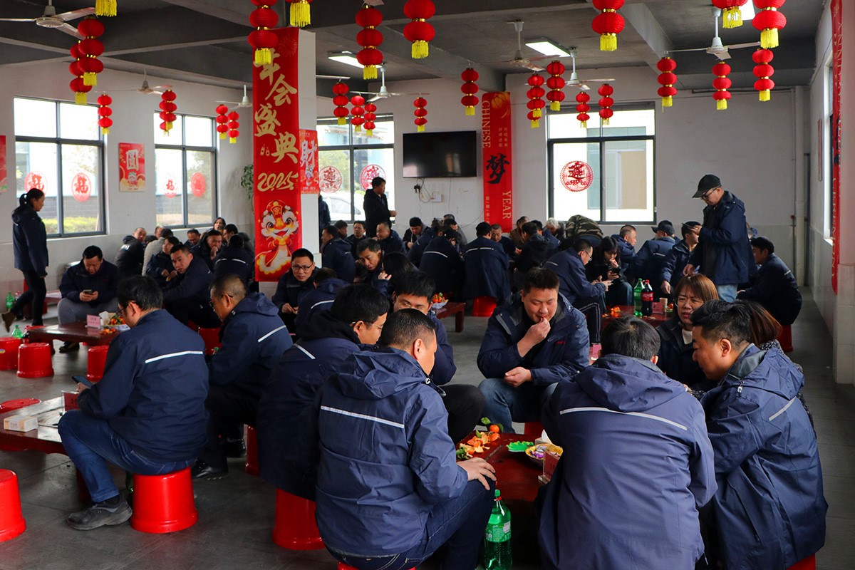 團(tuán)年飯期間,食堂內(nèi)歡聲笑語(yǔ)不斷。大家或舉杯共飲,或談笑風(fēng)生,或合影留念,共同度過(guò)了一個(gè)溫馨而難忘的夜晚。這場(chǎng)新春團(tuán)年飯不僅加深了員工之間的友誼和團(tuán)結(jié),也為大家提供了一個(gè)放松身心、享受美食的機(jī)會(huì)。