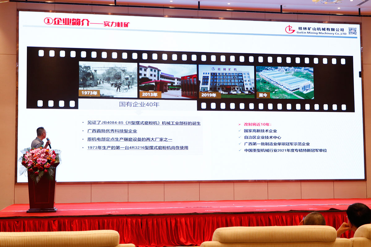 作為行業(yè)久負(fù)盛名的粉體設(shè)備研發(fā)、制造企業(yè),桂林礦機(jī)副總工程師、研發(fā)部經(jīng)理王劍瓊應(yīng)邀出席并作大會(huì)發(fā)言,他回顧了桂林礦機(jī)在國(guó)有企業(yè)40年里頭的榮譽(yù),見證了《R型擺式磨粉機(jī)》行業(yè)標(biāo)準(zhǔn)的誕生;改制后不斷與時(shí)俱進(jìn)開拓創(chuàng)新,榮獲國(guó)家高新技術(shù)企業(yè)、自治區(qū)“專精特新”中小企業(yè)、第一批制造業(yè)單項(xiàng)冠軍示范企業(yè)等殊榮。