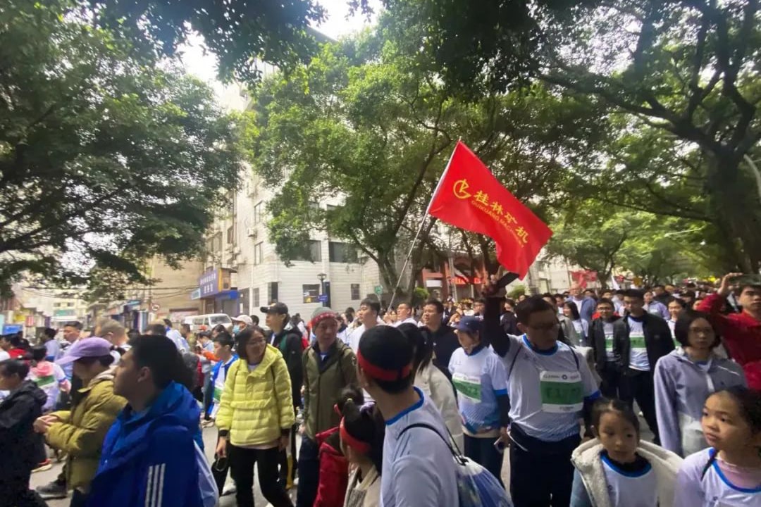 3月26日上午8:00,2023年桂林馬拉松在桂林市中心廣場鳴槍開跑。來自全球11個(gè)國家和地區(qū)的3萬名選手,齊聚山水甲天下的煙雨桂林,在賽道上熱血奔跑。桂林礦機(jī)的跑團(tuán)成員們,高舉桂礦旗幟,縱情狂奔,成為賽道上一簇耀眼的光芒。