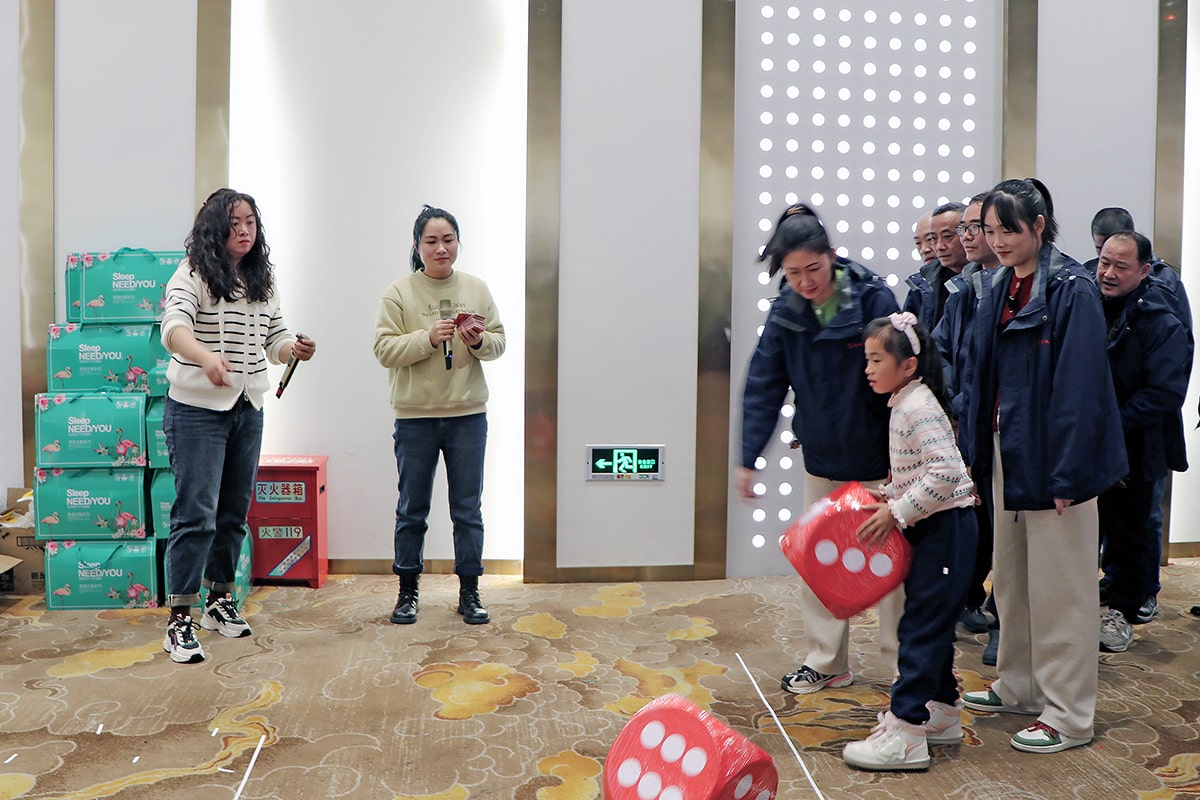 文藝演出之后,一場別開生面的擲色子、套圈小游戲又讓現(xiàn)場氣氛達到了高潮;顒娱_始前,現(xiàn)場已經(jīng)布置妥當(dāng),色子整齊地擺放在指定位置。員工們紛紛到場,他們躍躍欲試,期待在這場游戲中展現(xiàn)自己的智慧與技巧。