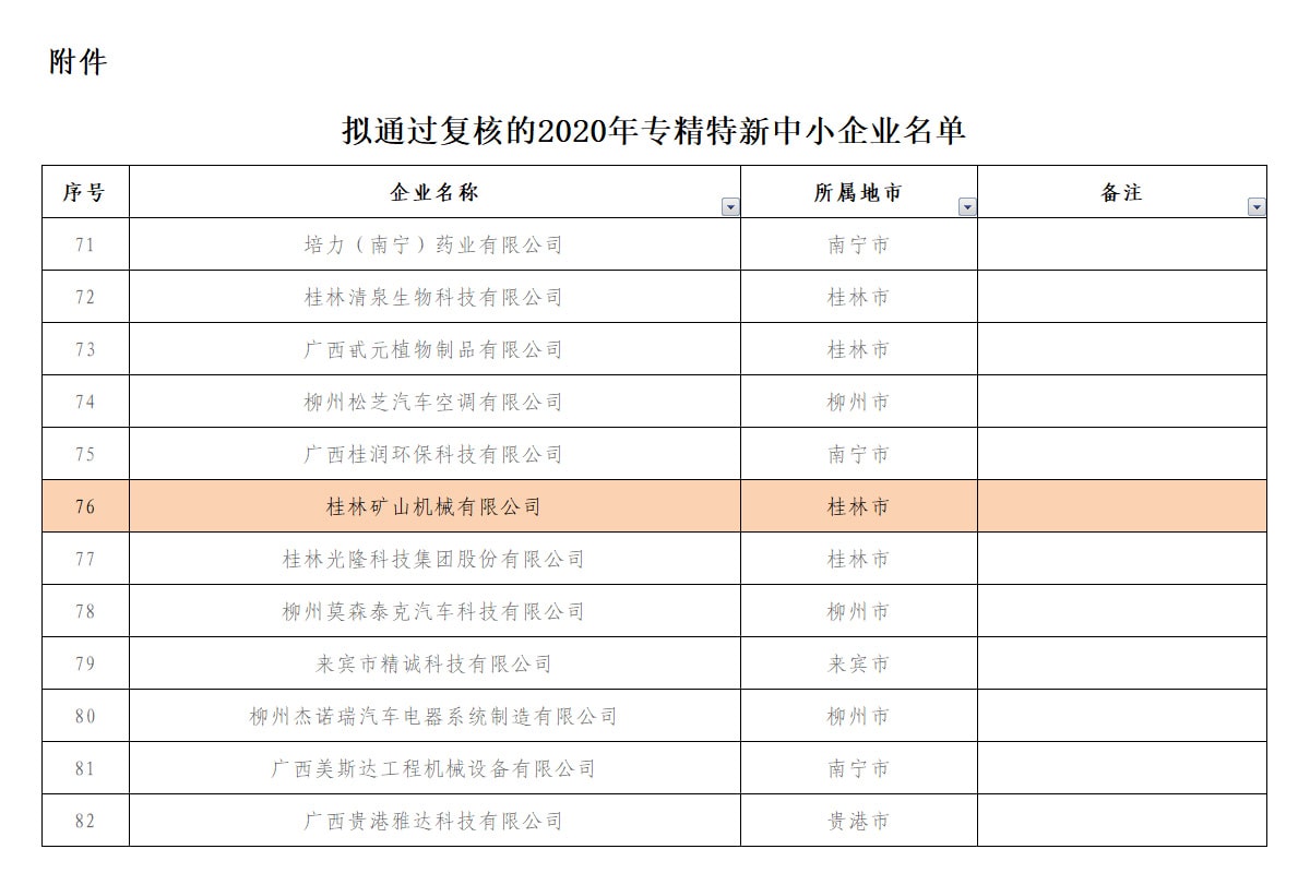 近日,自治區(qū)工信廳公布了2020年專(zhuān)精特新中小企業(yè)復(fù)核結(jié)果,桂林礦機(jī)憑借卓越的技術(shù)創(chuàng)新能力和突出的市場(chǎng)表現(xiàn),被列入復(fù)核通過(guò)名單。