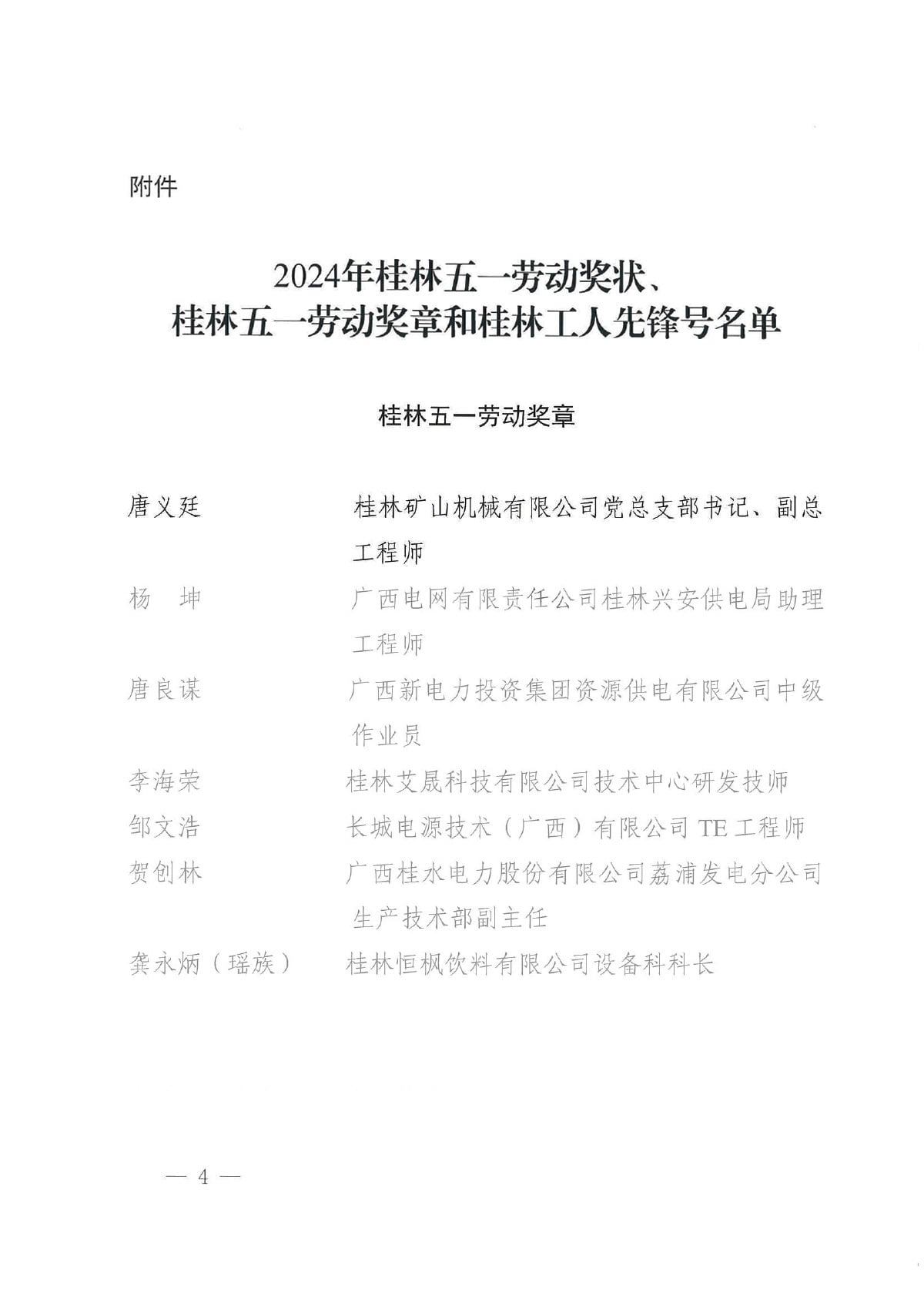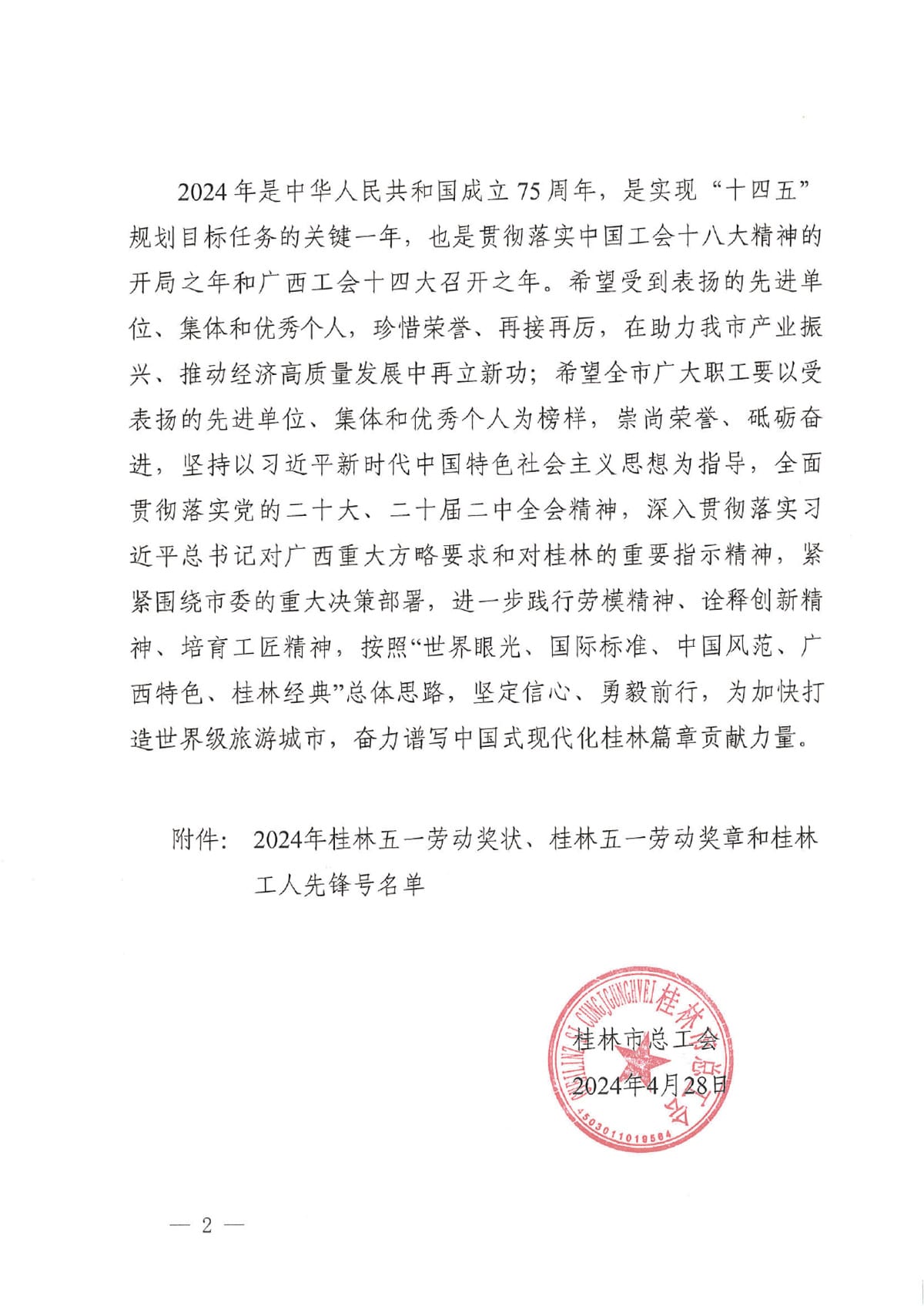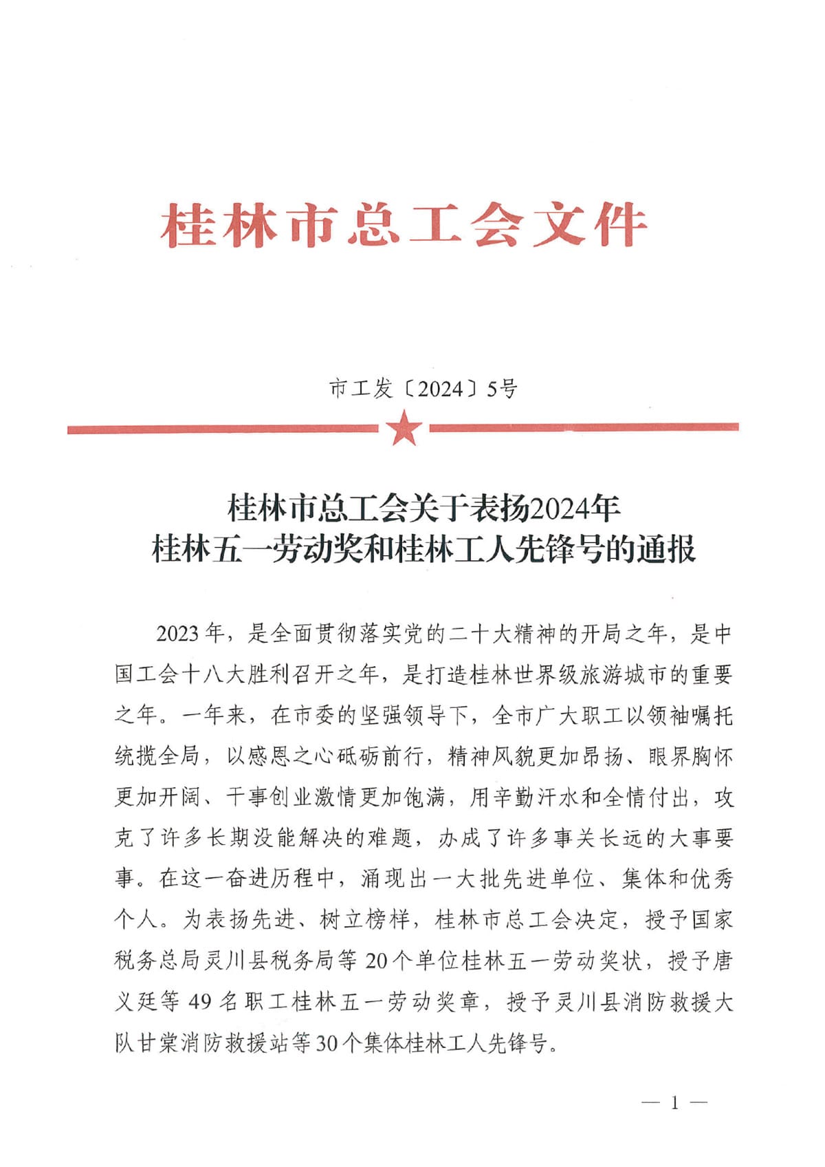 為表揚(yáng)先進(jìn)、樹立榜樣。近日,桂林市總工會發(fā)文關(guān)于表揚(yáng)2024年桂林五一勞動獎和桂林工人先鋒號的通報,決定授予唐義廷等49名職工桂林五一勞動獎?wù)隆?